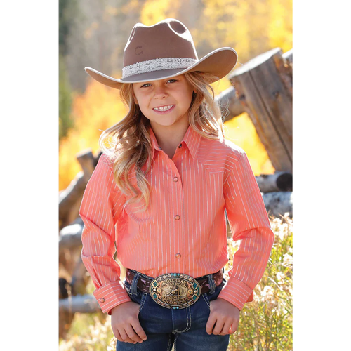 CTW3370007 Cruel Girl Girls' Peach Striped Snap Western Shirt