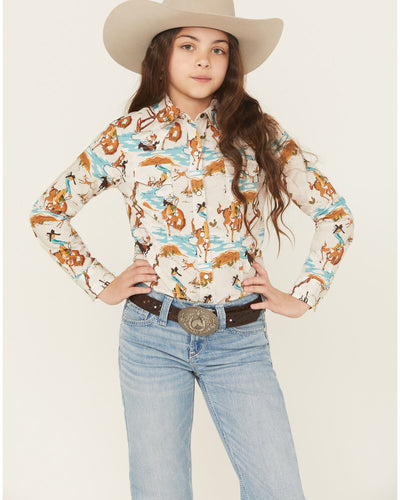 Cruel GIrl Girls' Long Sleeve Western Snap Shirt - Cream Print