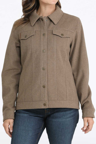 WOMEN'S SOUTHWESTERN PRINT TWEED SHIRT JACKET - BROWN